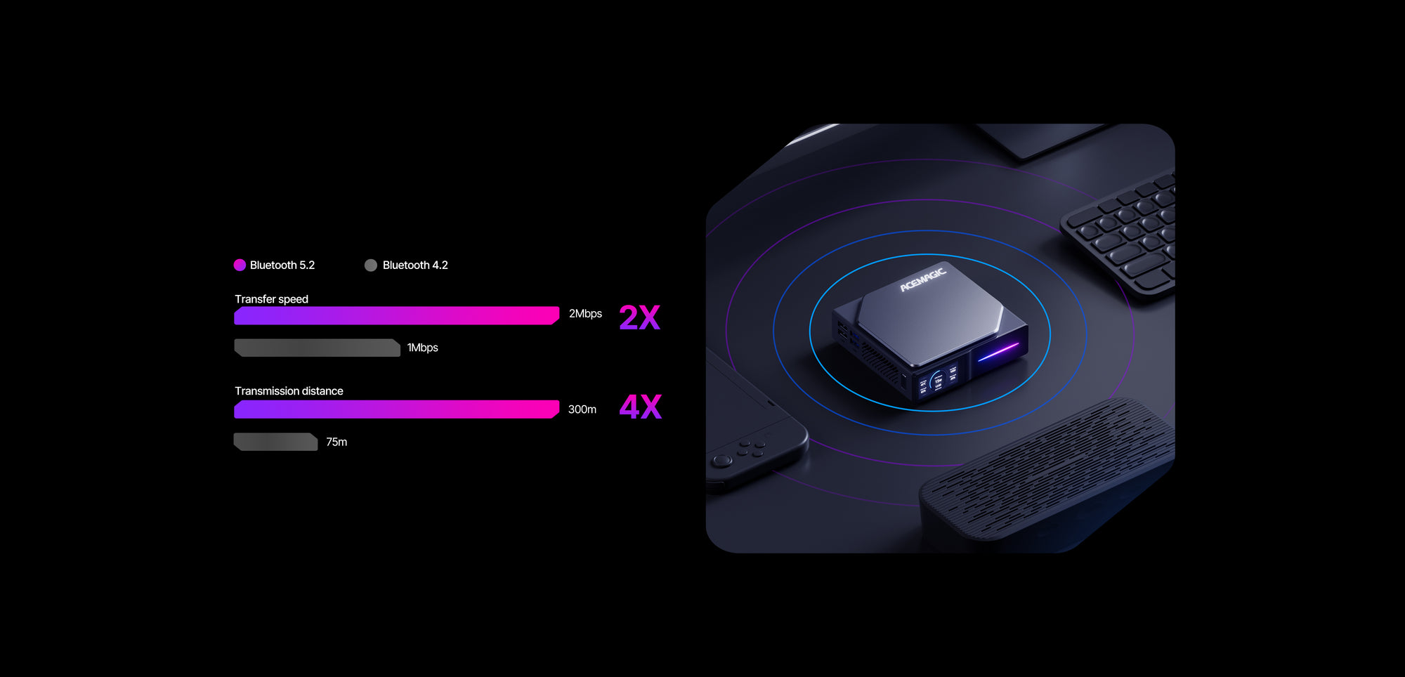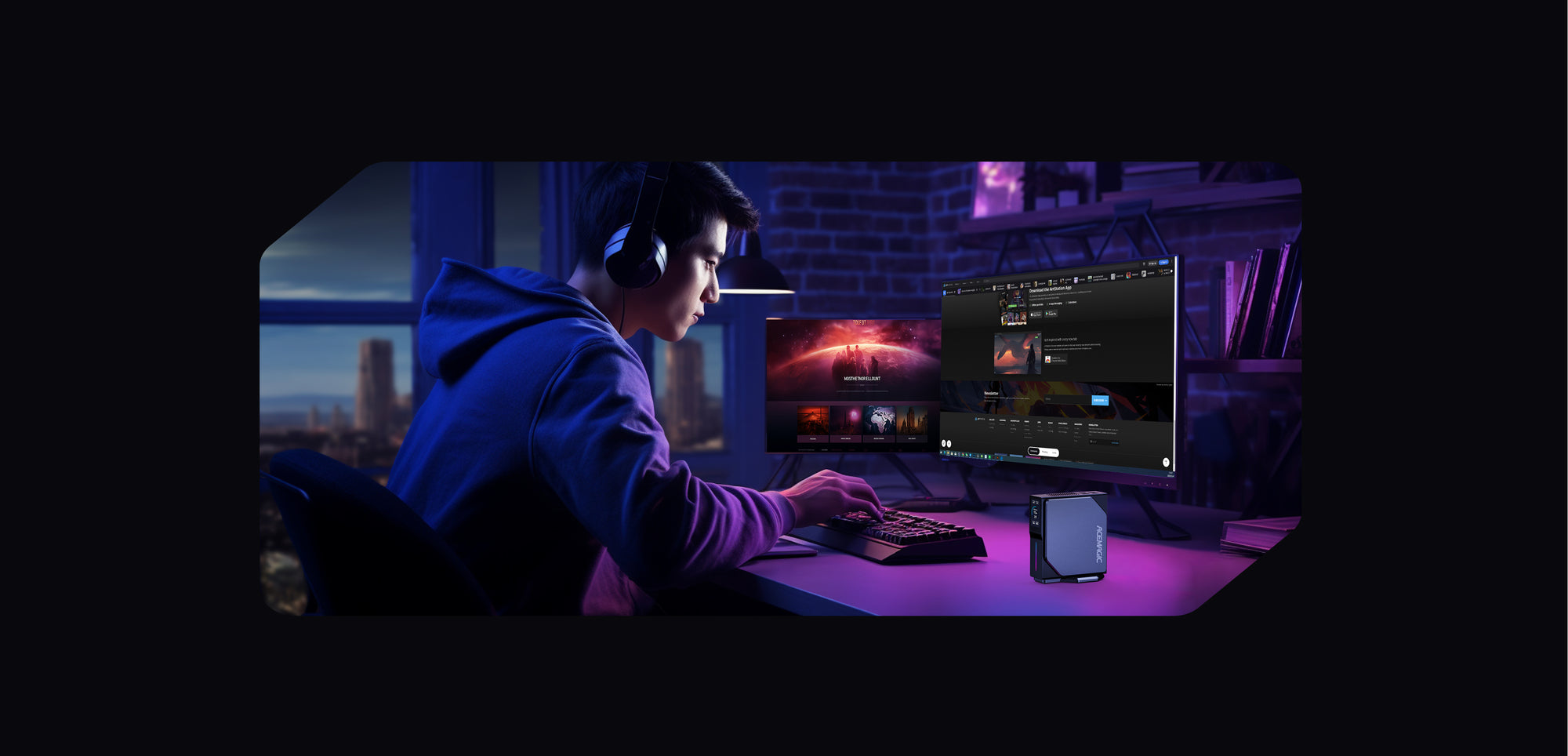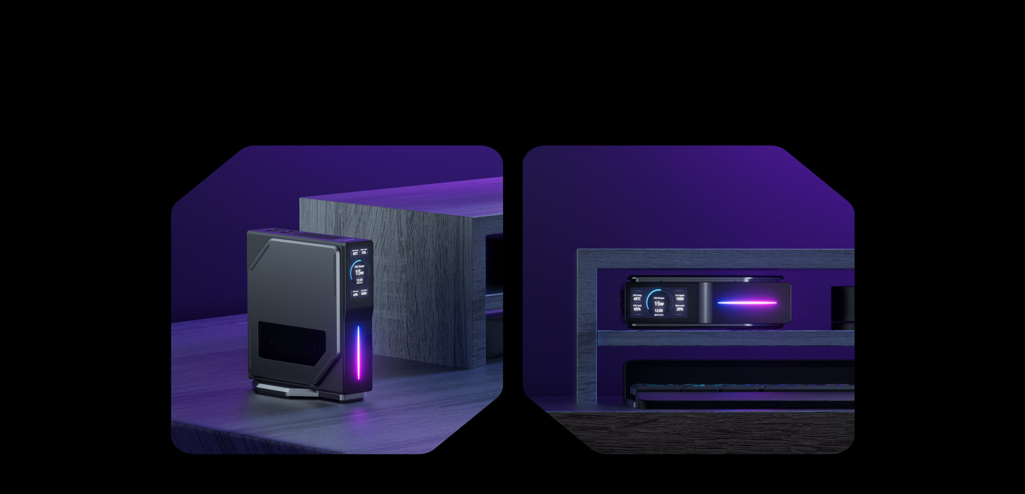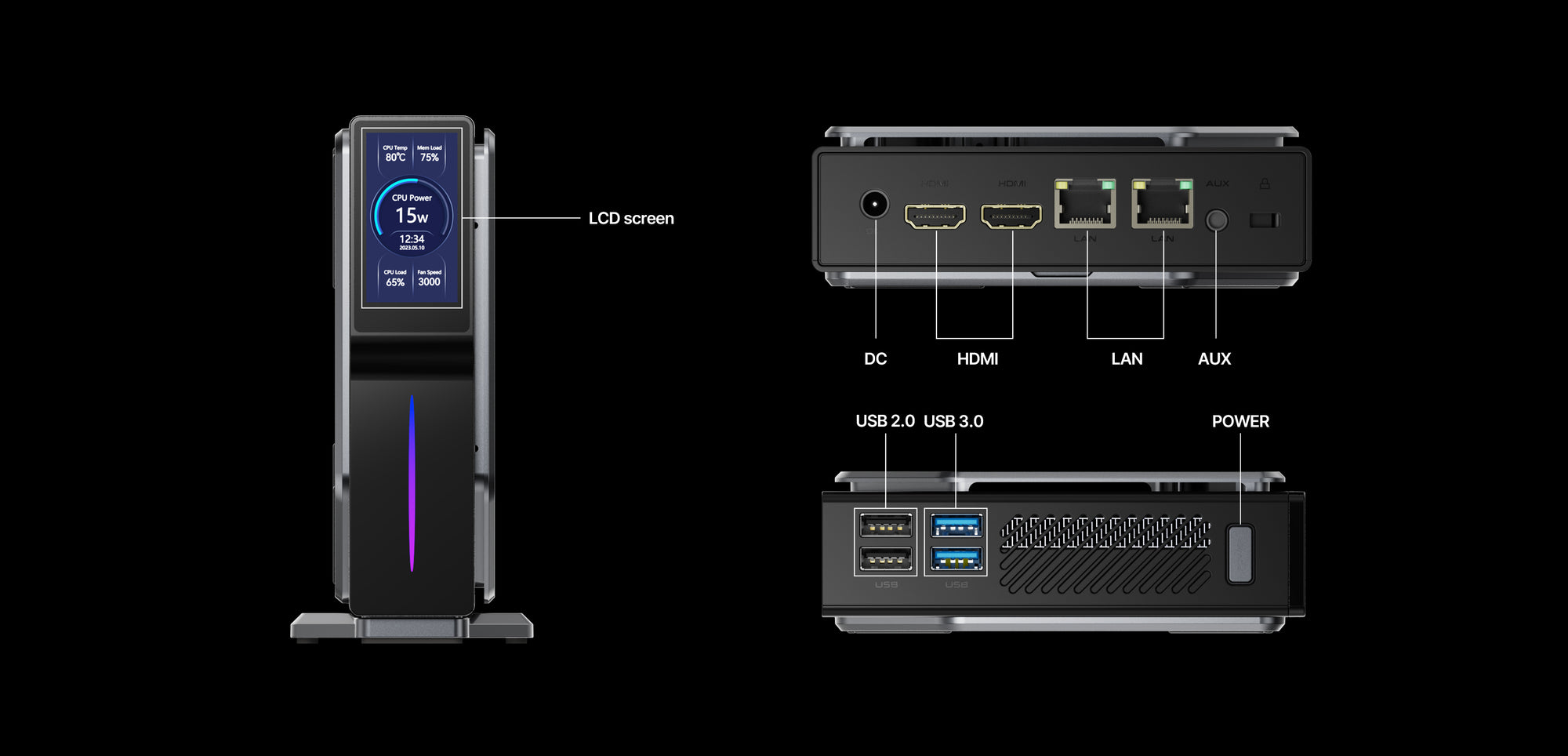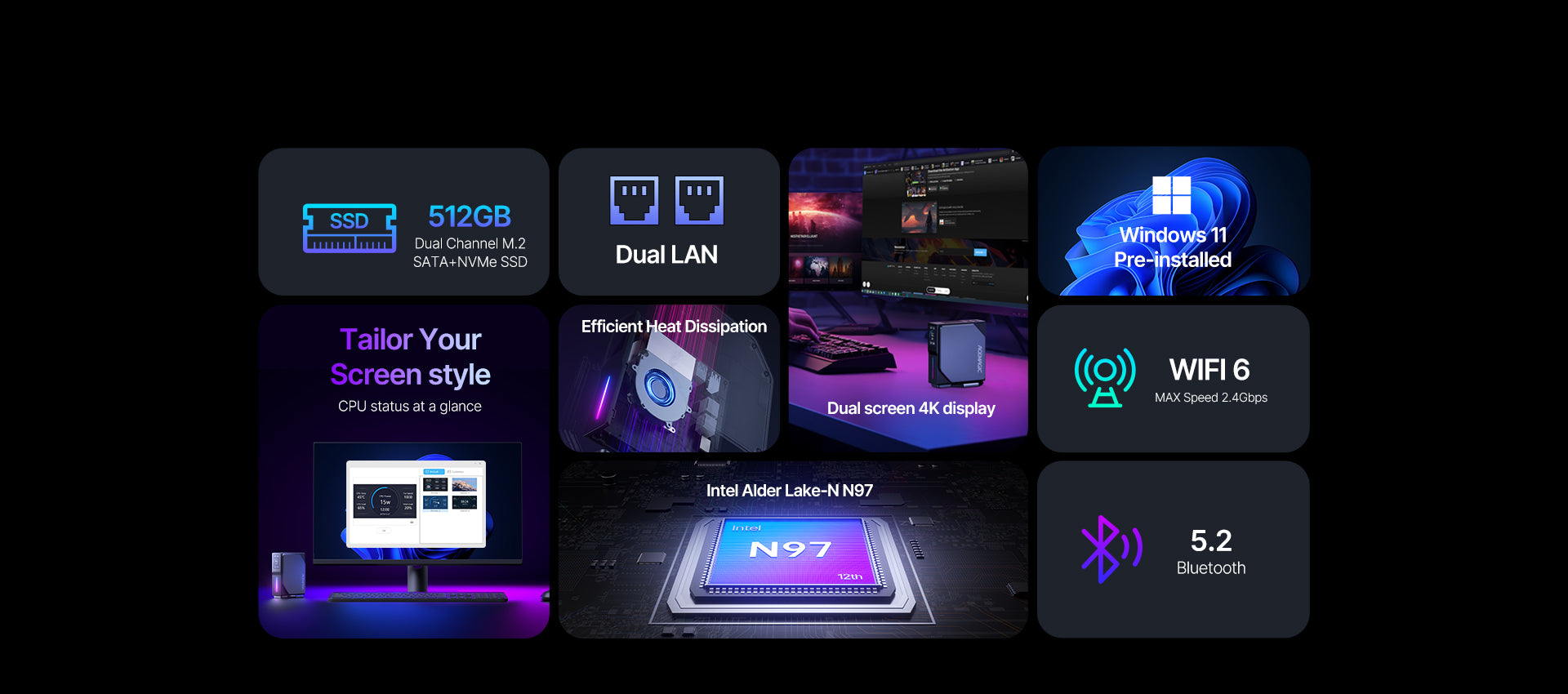 Được nâng cao với WiFi6, BT5.2 và Dual Gigabit LAN, trong khi cổng HDMI 2.0 kép cho phép thực hiện đa nhiệm hiệu quả trên hai màn hình 4K. Chiếc PC mini này cũng tự hào có màn hình LCD có thể tùy chỉnh với ánh sáng RGB để mang lại cảm giác cá nhân hóa và theo dõi các số liệu thống kê của hệ thống.