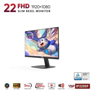 Màn hình VSP IP2205F là lựa chọn màn hình nhỏ gọn, hiệu quả cao cho cả văn phòng, học tập và giải trí gaming nhẹ. Với kích thước 21.45 inch độ phân giải Full HD 1920×1080, tấm nền IPS chất lượng cao cùng tốc độ làm mới 120Hz và thời gian phản hồi 1ms, IP2205F mang đến trải nghiệm hình ảnh mượt mà, màu sắc chính xác và góc nhìn rộng — vượt trội hơn so với các màn hình phổ thông cùng phân khúc.